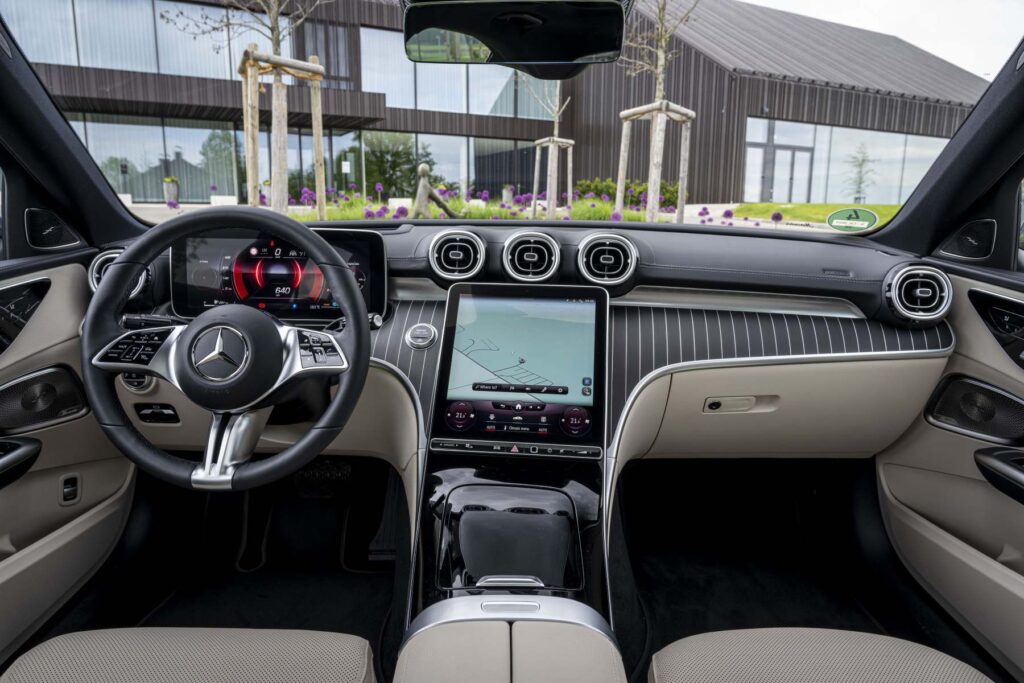Mercedes hýčká svoji posádku i vnitřním prostorem, který vzadu výrazně narostl především v oblasti kolen a nad hlavou. Velký podíl na tom má znatelně větší délka (+ 65 mm) i rozvor (+30 mm). Zavazadlový prostor si u sedanu zachoval nezměněný objem 455 litrů (u kombi se zvětšil o 30 l na celkových 490 l). Otazníky může u někoho vyvolávat obsluha prakticky všeho přes dotykový displej, který z principu věci i kvůli svému umístění odvádí pozornost od řízení. Mercedes však disponuje nejpropracovanějším a plně funkčním hlasovým ovládáním, záleží proto hlavně na řidiči, jestli je ochoten naplno využívat moderních vymožeností, které uživatelské rozhraní třídy C nabízí.