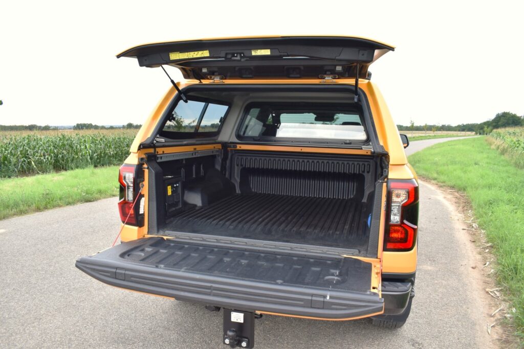 Nosnost se odlišuje podle výbavy, maximálně je ale na 989 kilogramech (je to o kousek nižší hodnota než mají spalovací verze, ale rozdíly nejsou kdovíjak propastné) a pick-up podobně jako čistě spalovací verze utáhne brzděné přívěsy o celkové hmotnosti až 3,5 tuny. A do zásuvek na korbě zapojíte veškeré potřebné spotřebiče.
