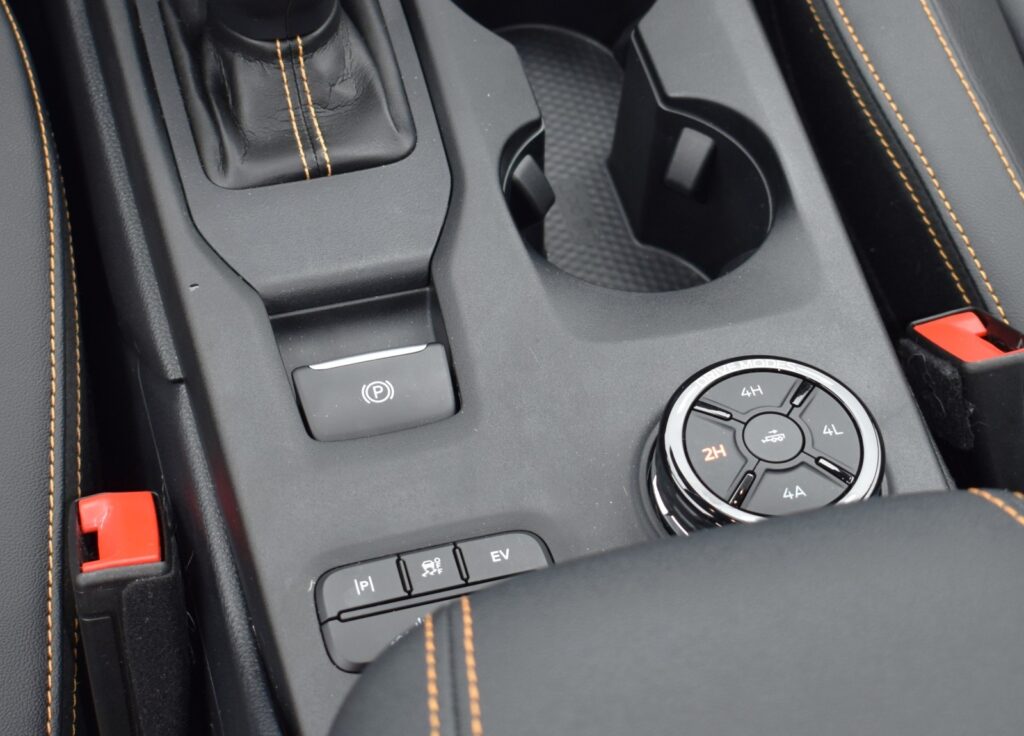 Plug-in hybrid má standardně desetistupňovou samočinnou převodovku a rovněž přiřaditelný pohon všech kol (manuálně volený s možností volby stálého pohonu všech kol pro použití na silnici), dvoustupňovou rozvodovku a uzávěrku zadního diferenciálu. Světlá výška 229 mm je stejná jako u dalších verzí, stejně tak nájezdový úhel 28 stupňů vpředu a 25,6 stupně vzadu.