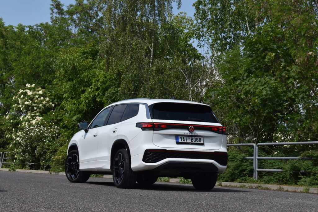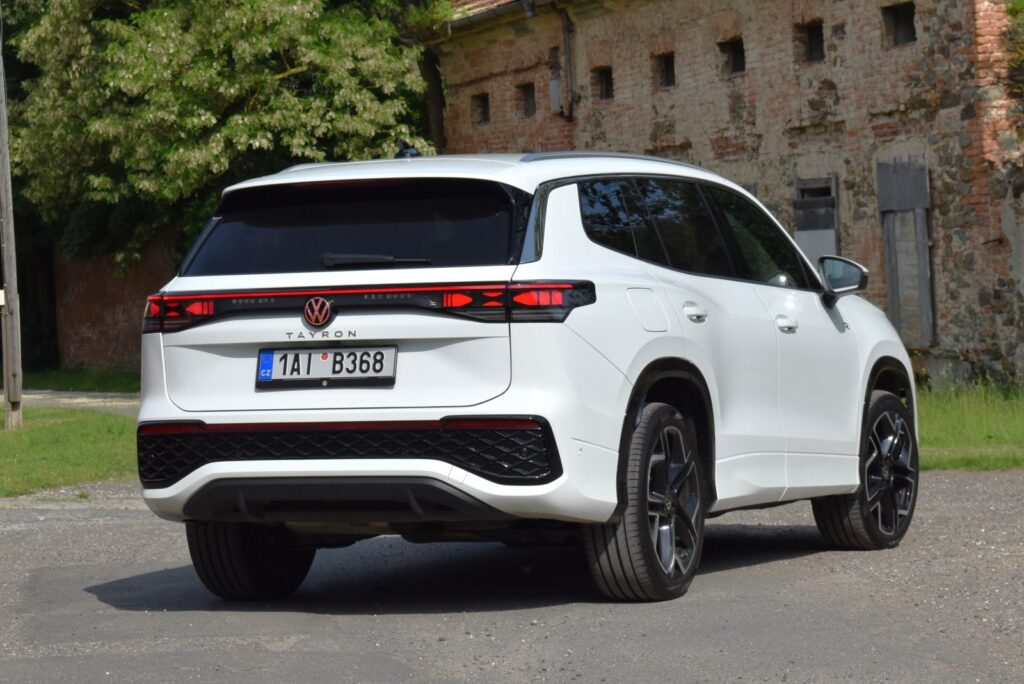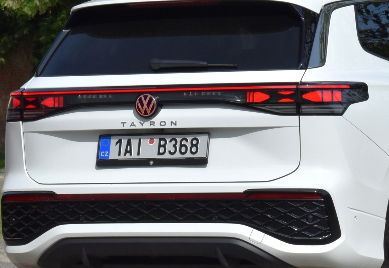 Volkswagen Tayron vstoupil na český trh jako zcela nový model, který rozšiřuje nabídku značky v segmentu středně velkých SUV. S délkou 4792 mm a rozvorem 2789 mm zapadá mezi Tiguan Allspace a Touareg, čímž nabízí atraktivní kompromis mezi prostorem a cenovou dostupností. Zároveň přináší modernizovaný design a nové technologie, které posouvají uživatelský komfort na vyšší úroveň. Díky vylepšené aerodynamice dosahuje koeficientu odporu vzduchu cx = 0,28. Tayron přebírá stylistické prvky současné generace vozů Volkswagen – nechybí podsvícené logo, LED světlomety Plus s animovanými směrovkami a výrazná lišta mezi světly.
