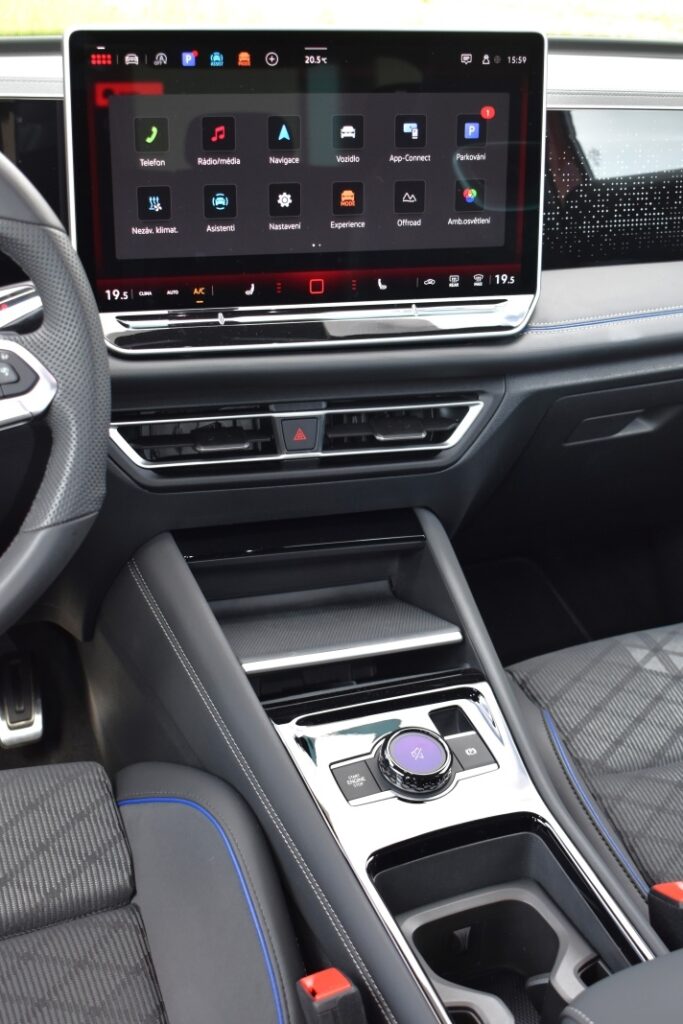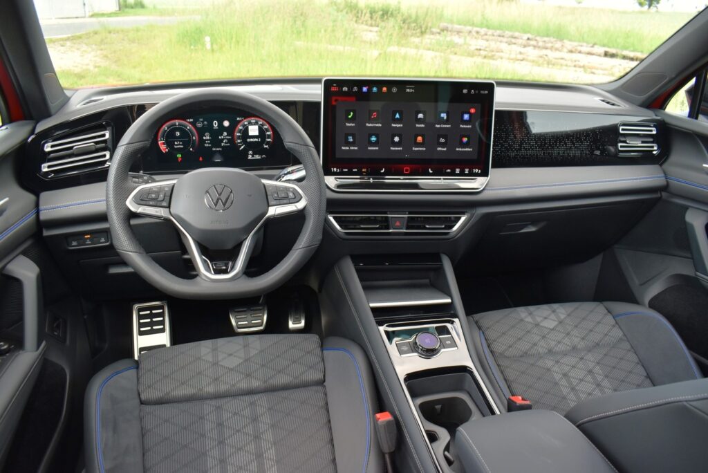 Interiér nového Tiguanu navazuje na přístup známý z modelové řady ID. Dominantním prvkem je centrální dotykový displej o úhlopříčce až 15 palců, doplněný o digitální přístrojový štít Digital Cockpit Pro a nový multifunkční ovladač na středové konzoli. Potěší i návrat samostatných tlačítek pro výhřev sedadel nebo klimatizaci. Systém infotainmentu podporuje bezdrátové připojení smartphonů a nabídka výbavy zahrnuje jak praktické, tak komfortní prvky – od elektricky ovládaného víka zavazadelníku až po asistenty řízení druhé úrovně nebo akustická izolační skla. V rámci paketů lze zvolit také adaptivní podvozek DCC Pro s dvouventilovými tlumiči.