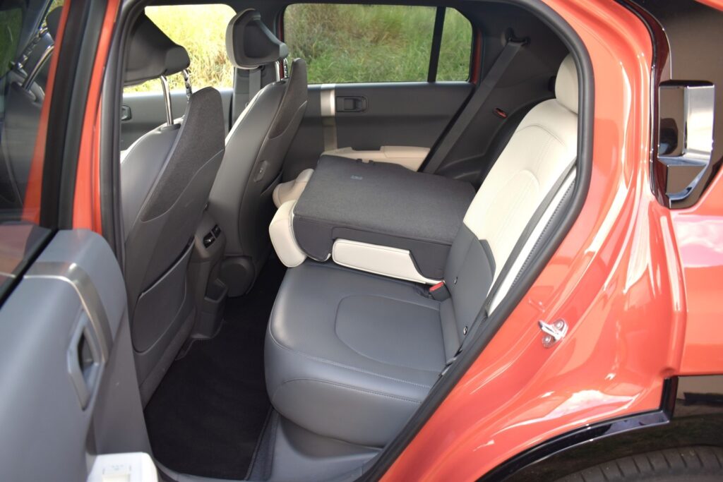 Trefila se také do vnějších rozměrů: délka činí 4,3 metru, přičemž rozvor náprav je natažený na 2680 mm. Prostor pro kolena vzadu je mimořádný, a to i v případě, že si dopředu sedne vyšší řidič. Také nad hlavou nebo v oblasti ramen nemají cestující větší problémy. Zavazadlový prostor o objemu 460 až 1251 litrů odpovídá třídnímu standardu; potěší i 25litrový frunk, tedy úložný prostor pod přední kapotou — navzdory poháněné přední nápravě.
