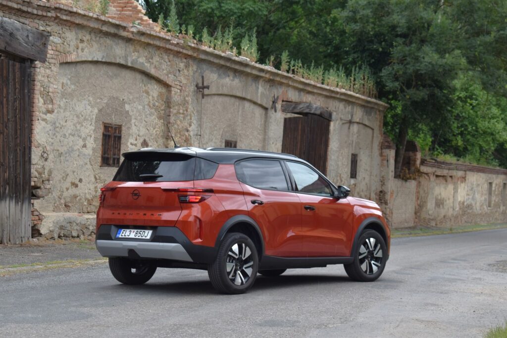 Designově sází na jasně čitelné SUV proporce. Mohutná příď s výraznou maskou Opel Vizor nese nový emblém Blitz a plynule navazuje na světlomety Intelli-LED s automaticky ovládaným dálkovým režimem. Celkový dojem dotváří světelný podpis ve formě křídel. V bočním profilu zaujme výrazný C-sloupek, opticky oddělující prostor pro cestující, a výrazné podběhy kol a blatníky, které dodávají vozu solidní a moderní postoj. Robustní vzhled doplňuje lichoběžníkový chladicí otvor v dolní části přídě.