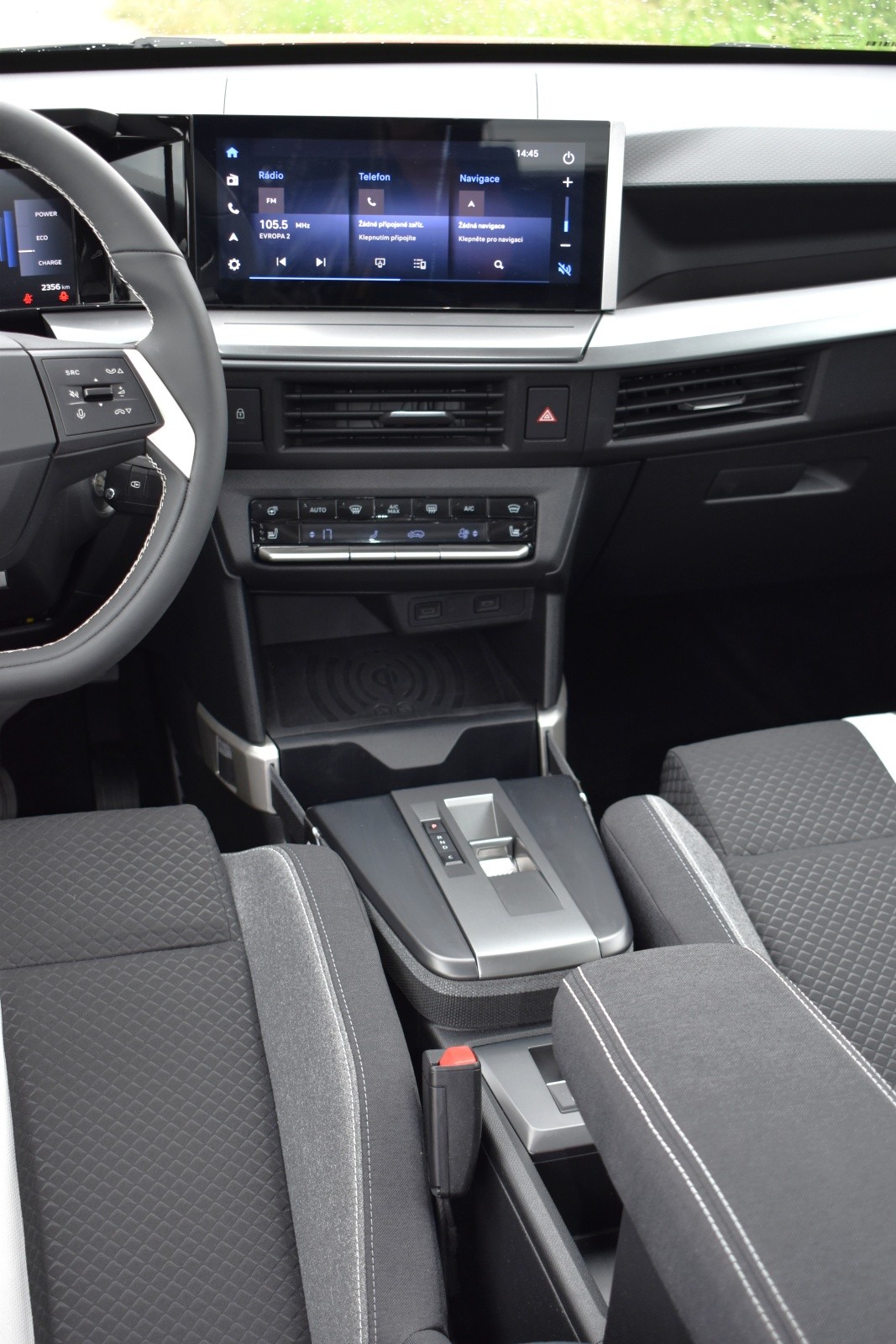 V interiéru najdeme digitální přístrojový panel o úhlopříčce 10 palců, manuální klimatizaci, elektrické ovládání všech oken i vnějších zrcátek, výškově a podélně nastavitelný volant a multimediální stanici pro smartphone. Zákazníci ocení i praktické prvky jako dělená zadní sedadla, zadní parkovací senzory, látkové čalounění či dvojitá podlaha zavazadelníku. Vizuální stránku dotvářejí černé lišty, střešní spoiler a 16″ černá ocelová kola.