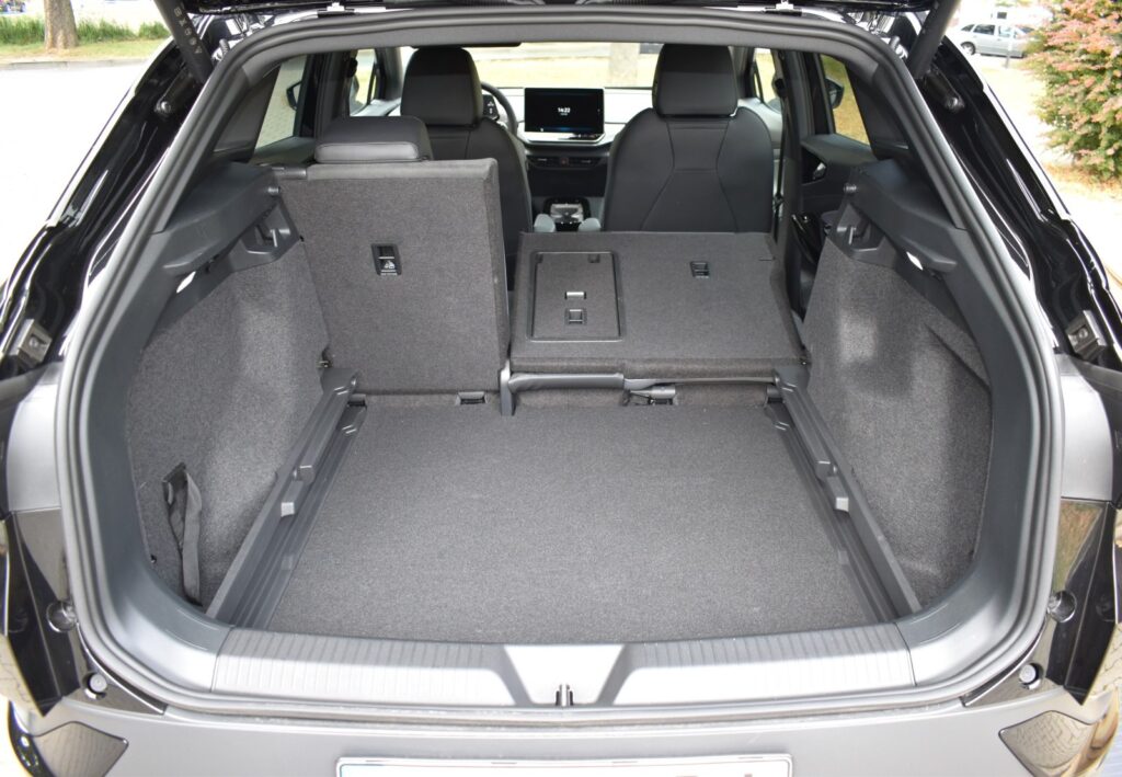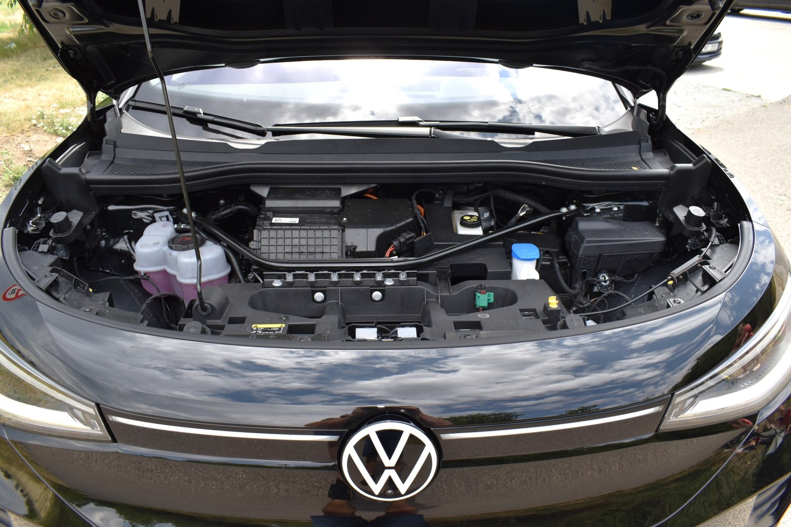 Velmi slušný je také prostor pro cestující. Na rozdíl od Škody Enyaq navíc řidiče netlačí palubní deska do pravého kolene. Vzadu pomáhá pravidelný tvar střechy a rozvor náprav natažený na 2771 mm. Zavazadlový prostor pojme u 4,6 metru dlouhého SUV solidních 543 litrů, ačkoliv frunk, tedy prostor pod přední kapotou nečekejte, i když má ID.4 v základním uspořádání pohon zadních kol.