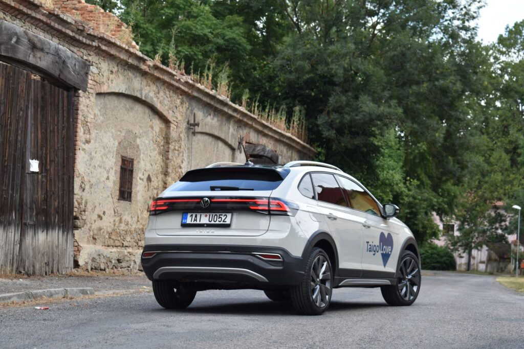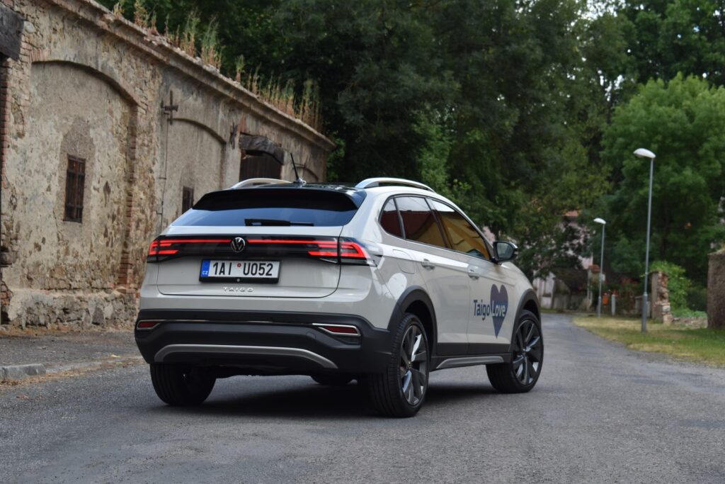 Plasty jsou sice místy tvrdé, ale zpracování na úrovni. Velikostí se taigo řadí někam na úroveň Škody Kamiq, ovšem s kratším rozvorem náprav. Na délku má 4269 mm, z čehož 2554 mm ukrajuje rozvor náprav. Trochu zamrzí absence posuvné zadní lavice, kterou má třeba SUV T-Cross. Nicméně nakonec ani svažující se střecha neubírá nad hlavou tolik místa, přinejmenším ne lidem s výškou kolem 180 cm. Zavazadlový prostor pak má objem 440 litrů i s prostorem pod podlahou. Po sklopení zadních opěradel lze využívat 1222 litrů.