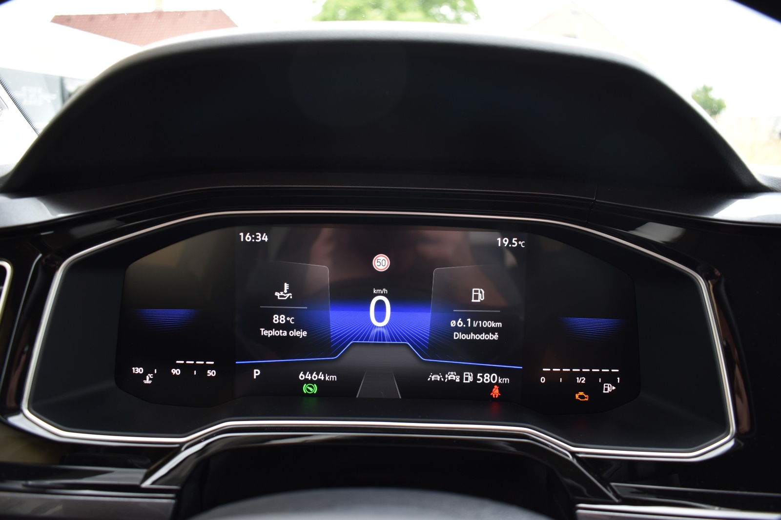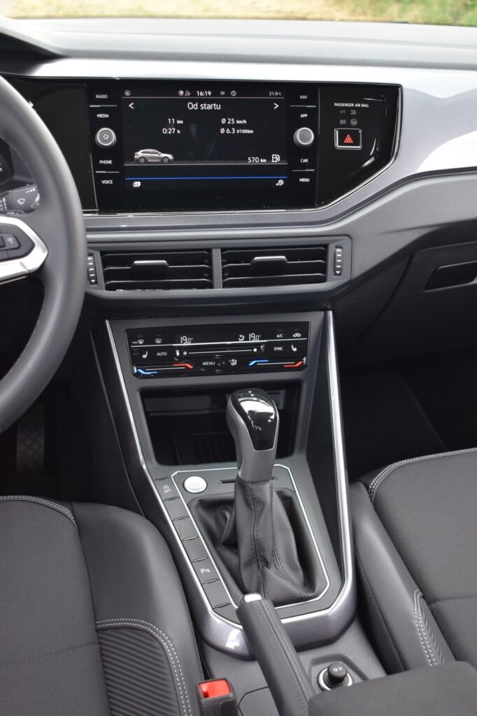 Pokud zvolíte automatickou klimatizaci, má auto dotykový panel pod výdechy ventilace. Manuální provedení má nadále standardní otočné ovladače. Vždycky má Taigo standardně dotykovou obrazovku s úhlopříčkou osm palců, až ve vyšších výbavách jde ale o plnohodnotný infotainment, ačkoliv bezdrátový Apple CarPlay i Android Auto nabízí taigo standardně. Vždy má rovněž osmipalcové virtuální budíky, které lze nahradit obrazovkou s úhlopříčkou 10,25 palce a rozšířenými funkcemi.
