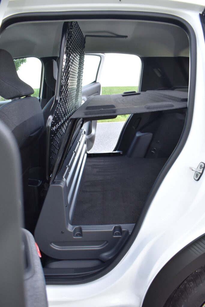 Zadní část kabiny je uzavřena pevnou mřížovou přepážkou, která je z bezpečnostních důvodů doplněna o boční výplně a odkládací polici. Nákladový prostor činí 698 litrů pod policí, respektive až 1 180 litrů po strop dle metodiky VDA. Podlaha je rovná a snadno přístupná přes zadní dveře. Díky využití osobního základu nabízí vůz nízkou nákladovou hranu a dobrou manévrovatelnost. V nabídce je šest laků karoserie, stejně jako několik typů kol a potahů, přičemž některé příplatky se liší od osobní verze.