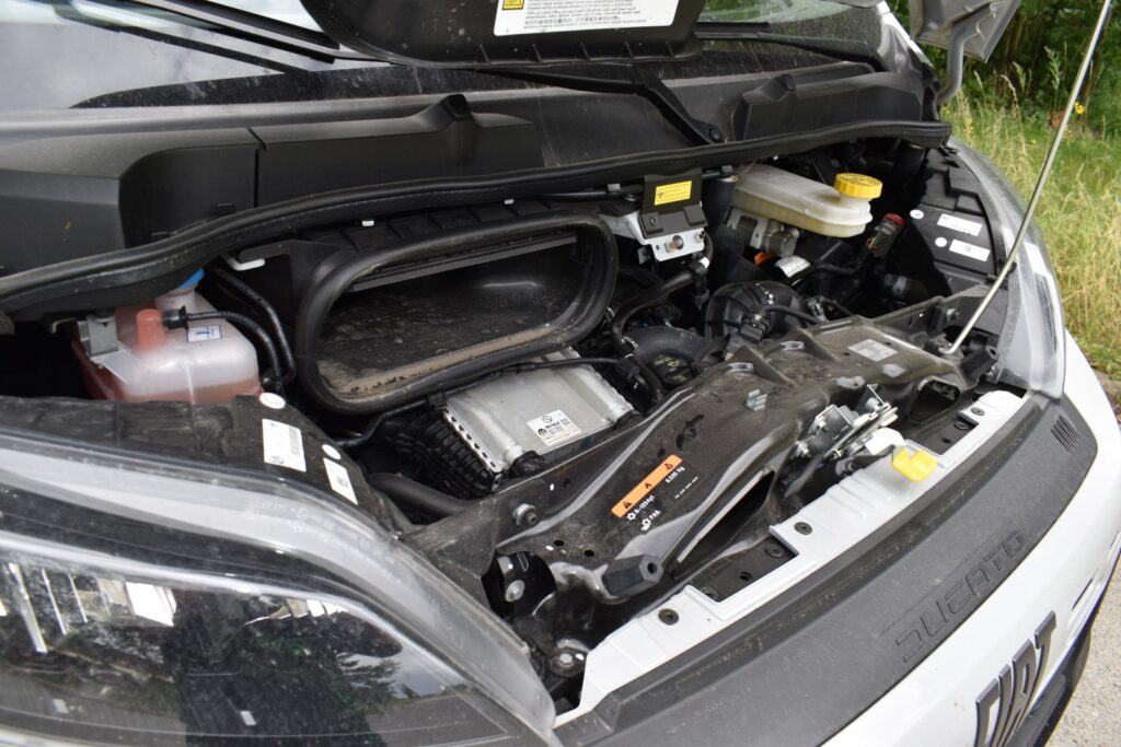 Místo dřívější volby mezi 37 a 70kWh akumulátorem je nyní dodávána pouze jedna verze se 110 kWh pro dojezd 424 km. Tomu pomáhá rekuperace s nastavitelným účinkem ve čtyřech intenzitách. Nabíjení je možné prostřednictvím 11kW palubní nabíječky, která akumulátor plně nabije za 11 hodin a 45 minut. DC stanice se 150 kW dostane E-Ducato na 80 % za 55 minut. Během pracovního dne řidiče podpoří sledování únavy, čtení dopravnách značek, udržování v jízdním pruhu, inteligentní omezovač rychlosti a protikolizní asistent s detekcí chodců a cyklistů.