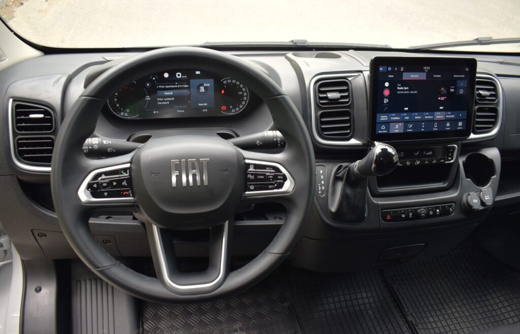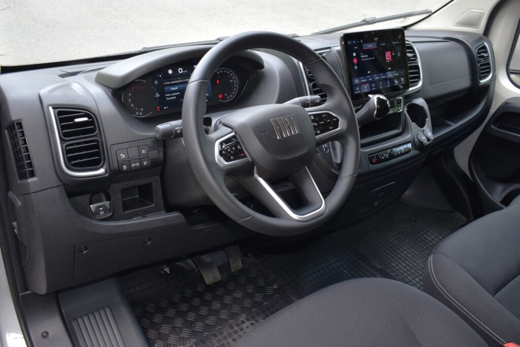 K hodnotnějšímu vzhledu přispívají kvalitnější materiály včetně obložení dveří. Ducato se dodává s látkovým čalouněním ve třímístné konfiguraci, tedy s dvojsedadlem spolujezdce. Praktickým řešením je sedadlo „Eat&Work“. Tento prvek nabízí otočný stolek, na který lze umístit notebook, talíře nebo tácy s obědem, a držáky nápojů s odkládacími miskami na tužky nebo příbory.